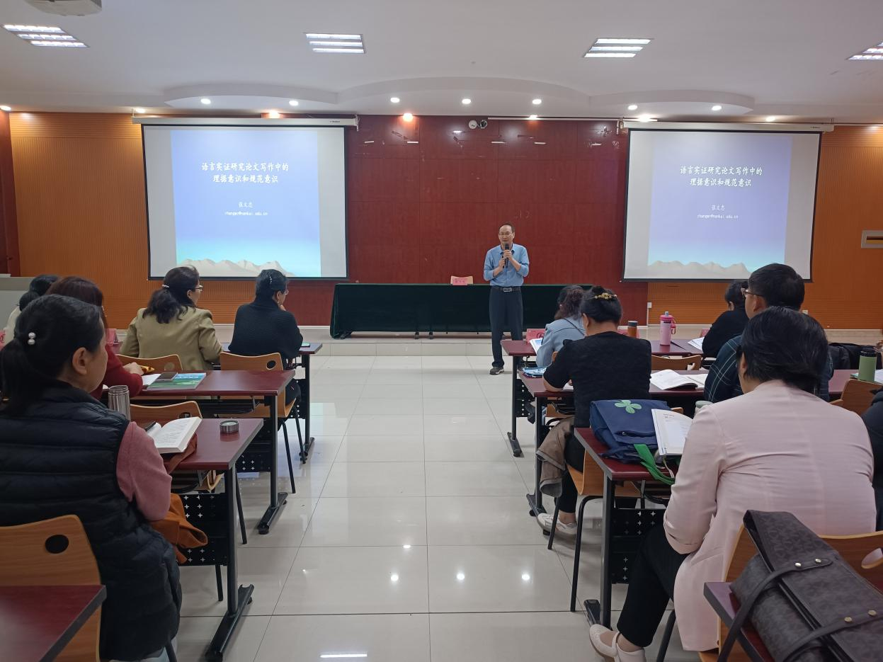 10月15日下午,张文忠教授在博文楼328为全体外院教师做了以“语言实证研究论文写作的理据意识和规范意识”为题的讲座,为教师们的教研工作提供了专业指导。首先,张教授详细解释了教师在语言实证研究及论文写作中应有的决定意识、理据意识和规范意识。然后,张教授站在论文评审的立场介绍了实证研究论文写作中的关键看点,并以一篇实证研究论文投稿为例分析了其评审意见。随后,张教授强调了论文修改的重要性,并通过分享一则修改实例展示了好的学术论文是如何改出来的。最后,张教授建议老师们既要学习和体验如何做实证研究,也应学习如何写出内容详实、理据充分、逻辑清楚、格式规范、读者友善、可读性强的文章。