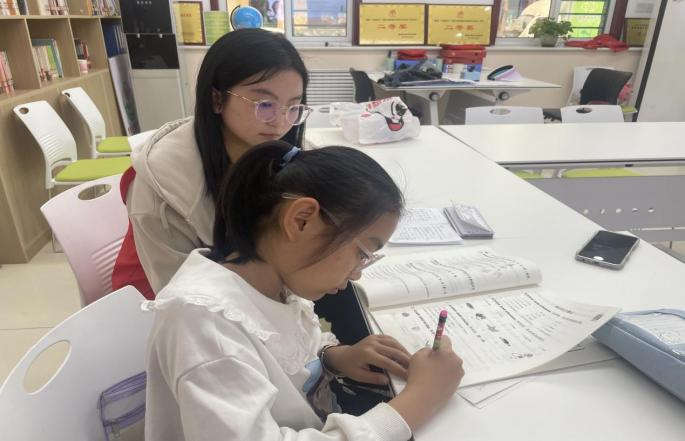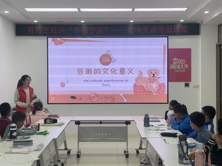 活动中,志愿者发挥专业特色,运用自身专业知识,用外语讲述中国传统节气故事及传统习俗,使小朋友们了解谷雨这一节气,呵护儿童快乐成长。随后,志愿者为小朋友们讲解部分英语单词与句子,小朋友们认真听讲,学会了许多新的知识。最后,志愿者们认真为小朋友们辅导作业,答疑解惑。