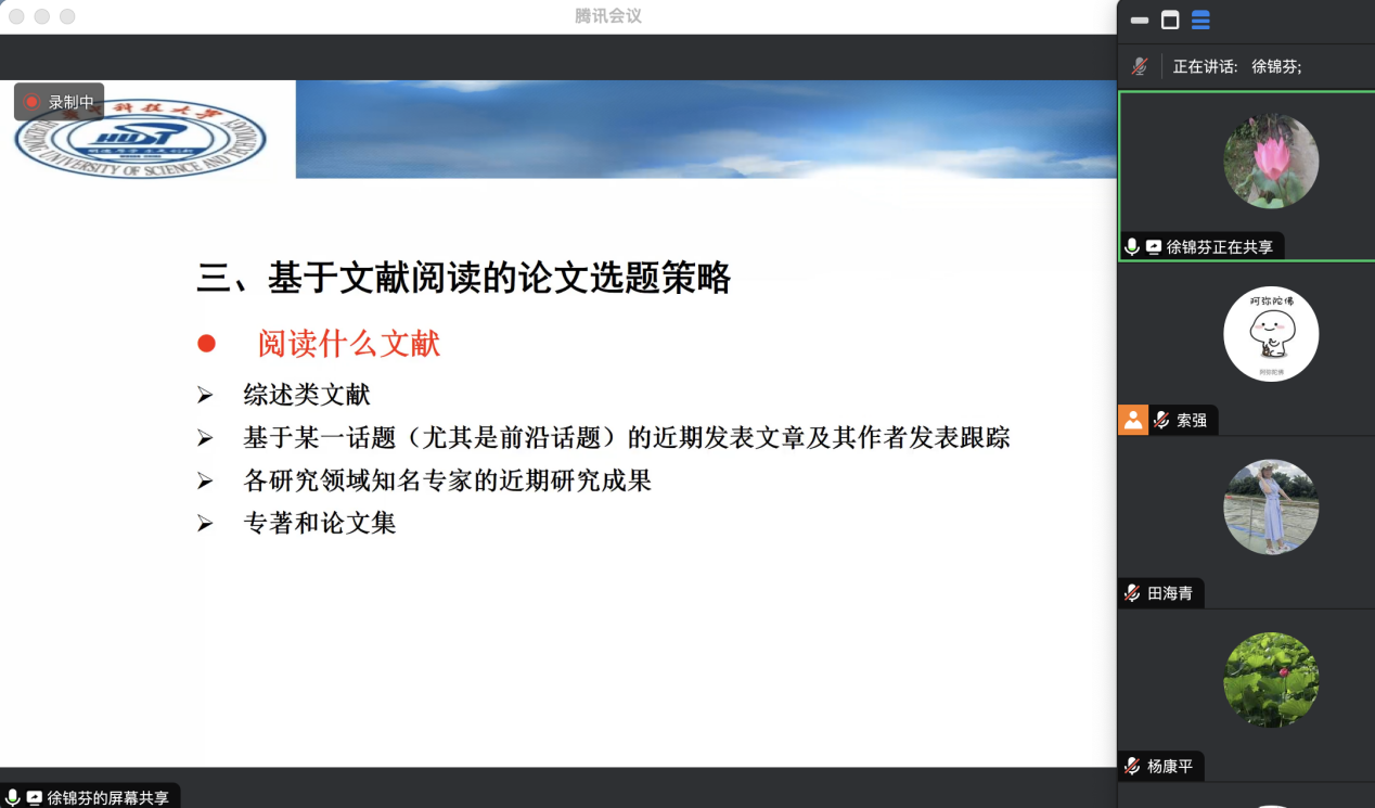 徐锦芬教授的讲座主要聚焦于外语学术研究前沿动态与论文选题策略两大主题。首先,徐教授对这两方面进行了全面而深入的阐述,内容包括论文选题常见问题、文献阅读的重要性以及选题创新等诸多方面。其次,徐教授以研究论文为例,从四个角度详尽地展示了如何基于文献阅读制定有效的论文选题策略。她强调要有针对性地查找文献、关注现实问题以搜寻相关文献、在阅读文献中获得附加收益、跟踪专家的研究发现以发掘新的研究工具,并运用这些工具开展研究。此外,徐教授还深入讲解了如何实现论文选题的创新,以帮助青年博士明确研究方向。