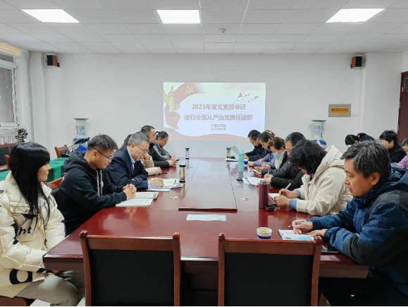 1月15日下午,抖音tv电视版app最新在博文楼240会议室进行了2023年党支部书记履行全面从严治党责任和抓基层党建工作述职及2024年理论学习中心组第一次集体学习。会议由抖音tv电视版app最新党委书记张国强主持,抖音tv电视版app最新班子成员、各支部委员、组织员、各民主党派人士参加了此次会议。德州学院党委委员、副校长刘印房列席会议。