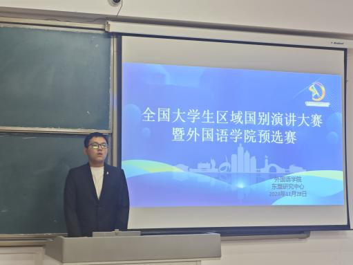 最后,东盟研究中心办公室主任对本次比赛进行点评总结,她介绍了区域国别学的发展现状,希望同学们发挥专业特色,提高专业技能和综合素养,成长为既有外语能力又有国别与区域研究知识和专业能力,能够服务于中外人文交流和国家文化软实力建设的具有国际化应用型人才。