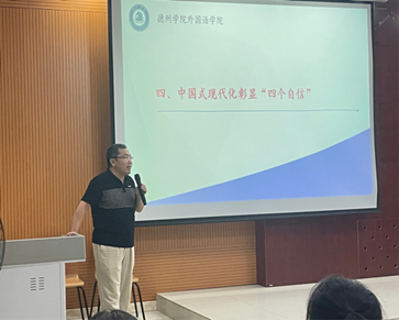 党课由党委书记张国强主讲,主题是“实现中华民族伟大复兴,我们能做些什么”,从“什么是中国式现代化”、“中国式现代化的历史逻辑”、“中国式现代化的发展历程”、“中国式现代化彰显“四个自信” ,四个部分进行讲述。阐述大学生始终是中国梦的引领者与主力军,引导新生们要认真学习党的理论知识、坚定理想信念,增强对中华民族伟大复兴的责任感。鼓励新生们积极向党组织靠拢,加强自身理论学习和专业学习,夯实基础。强调大学生责任意识培养 应以实现中国梦为伟大目标,将个人梦想与国家梦想相结合。