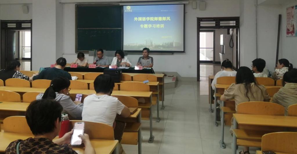 7月9日下午,抖音tv电视版app最新在博文楼227教室召开全体教职工大会,进行师德师风专项学习。会议学习习近平总书记在二十届中共中央政治局第五次集体学习时发表的重要讲话。会议还学习了师德师风典型案例。