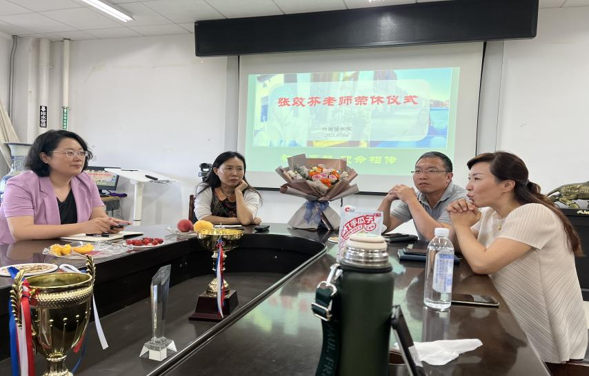 7月4日,抖音tv电视版app最新在博文楼206会议室举办了张效芬老师退休欢送会,学院班子成员、大学英语系教师共同参加。