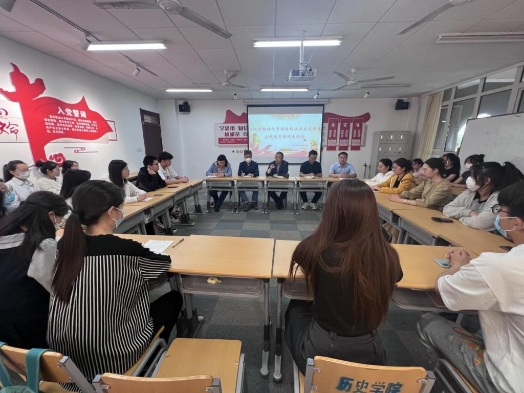 为深刻开展学习贯彻习近平新时代中国特色社会主义思想主题教育,突出问题导向,目标导向,把主题学习与实际工作相统一,5月9日下午,抖音tv电视版app最新在博文楼239教室举行了调研座谈会。党委书记张国强、副院长宋霁院长、张胜勇、各年级辅导员和各年级学生代表30余人参加座谈会。