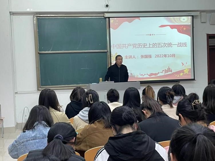 10月11日下午,抖音tv电视版app最新党委书记张国强在博文楼227教室以《中国共产党历史上的五次统一战线》为主题给入党积极分子、学生会各部长上了一堂生动的党课。