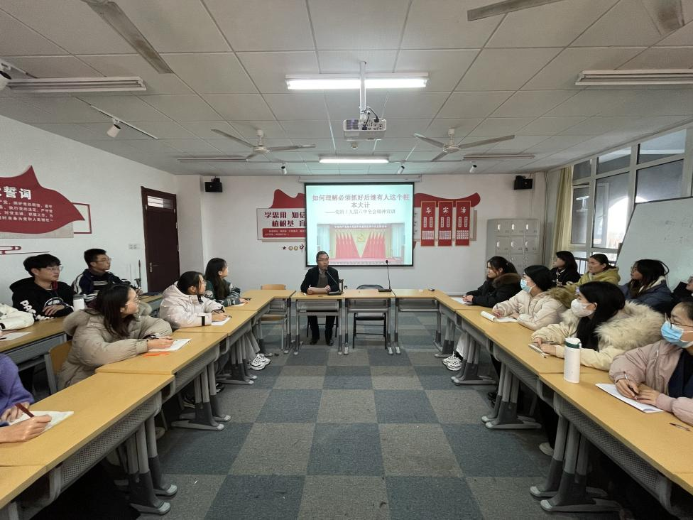 张书记围绕党的十九届六中全会精神的核心要义,结合《中国共产党第十九届中央委员会第六次全体会议公报》,旁征博引、深入浅出地讲解了中国共产党百年奋斗取得的伟大成就和积累的宝贵经验。并以《如何理解必须抓好后继有人这个根本大计》为主题为发展对象上党课,大力宣扬党的第十九届六中全会精神,深刻领悟优秀党员干部身上的精神素养,树立正确为人民服务的意识,努力为国家培养优秀人才。
