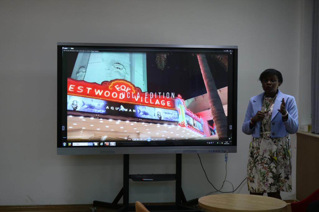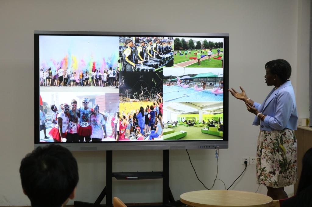 Dahlia老师通过问题“什么是大学”引出中外大学的对比,使同学们对大学生活有了更深层次的思考。整个活动过程中,不仅仅没有枯燥的ppt,老师还为同学们准备了许多图片和视频,期间还穿插着老师和同学们精彩的讨论。在整个活动过程中,老师非常有耐心,为了让每个人都能放松,都能参与到活动中来,老师先同各位同学进行了简单的会话,鼓励大家大胆地表达自己的想法,同学们也都报以积极的回应。整个活动过程非常精彩和有趣,同学们在收获快乐的同时还学到了知识,也进一步提高了自己的英语表达能力。