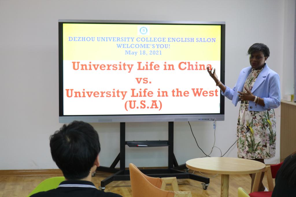为了提高学院学生的英语应用能力和综合素质,培养个人学习英语的热情,加强学生间的交流与合作,促进各专业之间的借鉴与学习。5月18日,来自牙买加的外籍教师Dahlia在大学生事物发展中心博学谷举办“英语沙龙”活动,本次活动主题为“University Life in China v.s University Life in West”。来自法学院、抖音tv电视版app最新、生态与资源资源学院、纺织服装学院等多个学院的同学积极参与。
