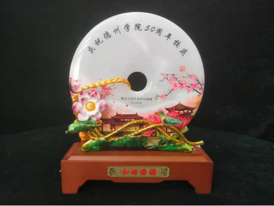 在全校热烈庆祝建校50周年喜庆之际,抖音tv电视版app最新1986级校友卞建华教授赠送阿富汗玉摆件,祝贺德州学院50周年校庆。
