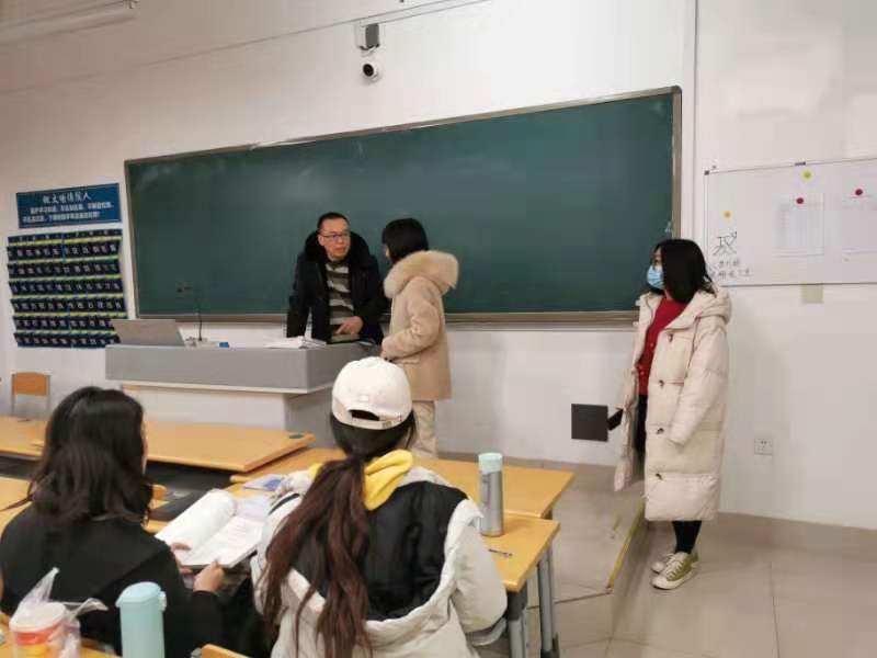 2021年3月1日,新学期开始,为了更好地开展学风建设专项检查,抖音tv电视版app最新李想副书记带领各年级辅导员进行新学期第一次查课。各级辅导员老师关注学生上课实时情况,带领督察部人员在博文楼有课班级教室进行考勤抽查,进入班级询问学生以及课程情况,与学生进行亲切交谈,使学生们更快地融入校园生活。现场督察部成员与各班级负责人核对人数,在领导老师的带领下有条不紊地开展各项工作。