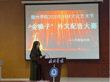 2020年12月8日下午,德州学院抖音tv电视版app最新在博文楼328报告厅隆重举办“金嗓子”外文配音大赛活动,抖音tv电视版app最新相关负责任人、各学院参赛选手和200余名观众参与本次比赛。