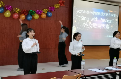 2020年12月15日,由德州学院抖音tv电视版app最新主办的“Sing With Passion”外文歌曲大赛于博文楼328教室开赛。抖音tv电视版app最新评委、全校12组选手、200余名观众参与本次比赛。