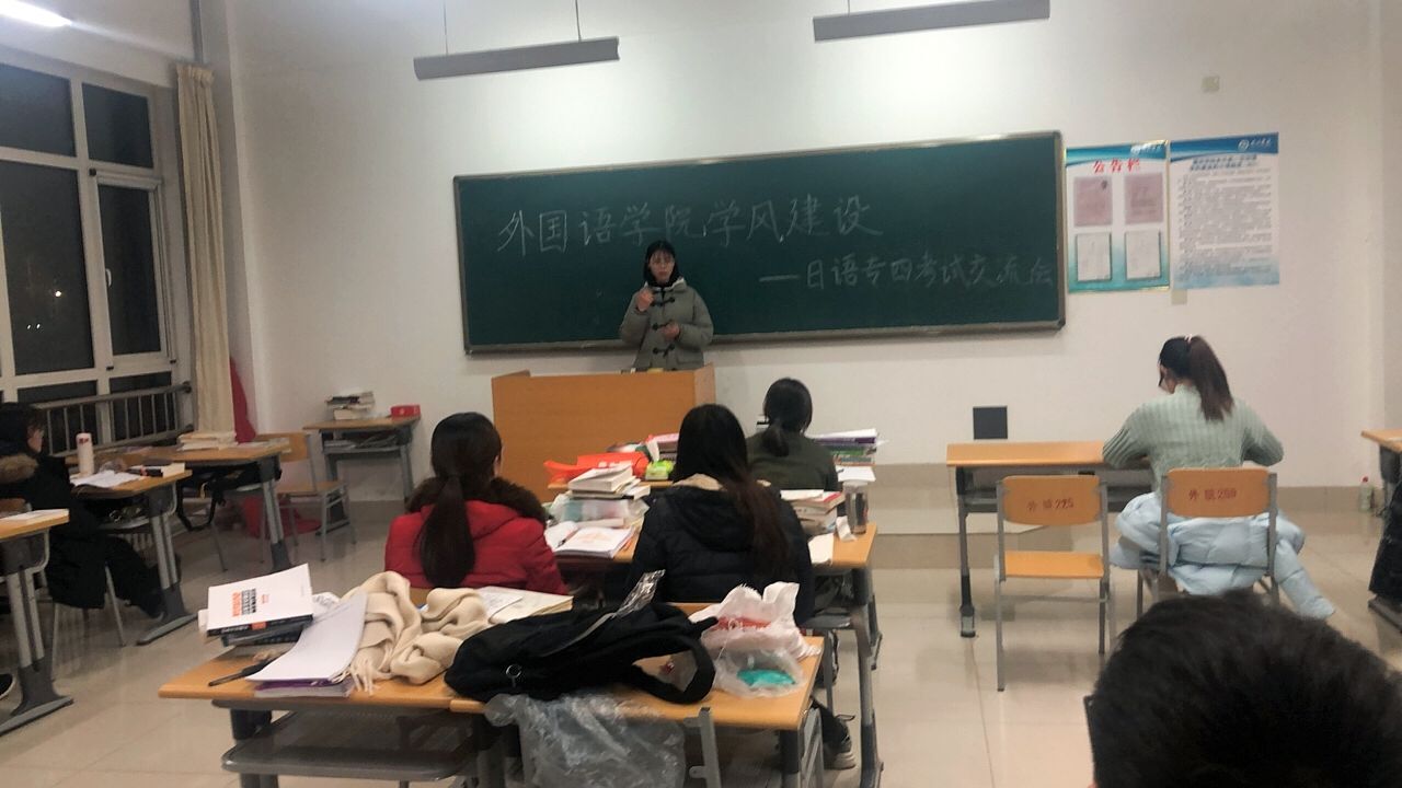 为了让同学们更好地掌握日语专四的考试技巧,增强同学们对专四考试的信心,调整考前心态。抖音tv电视版app最新特于2019年12月10日在博文楼213教室举行了抖音tv电视版app最新学风建设——日语专四考试交流会。
