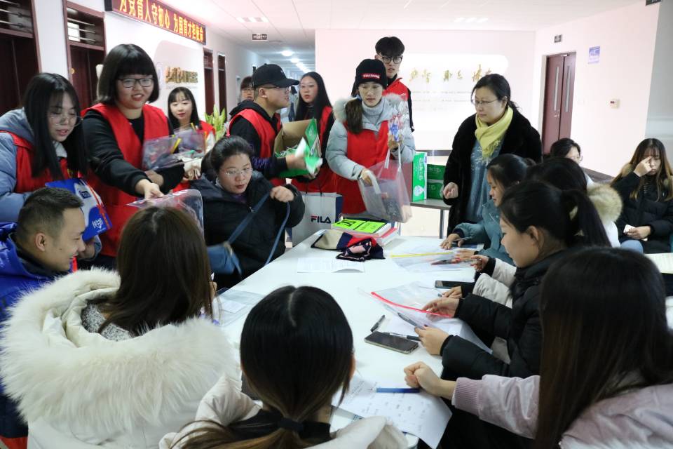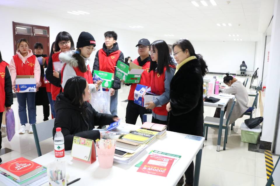 活动中,张萌萌老师向正在准备考研的学子表达了慰问、鼓励和期望之情,鼓励大家在最后的10天内积极准备,争取最后胜利,并且亲切地与考研同学分享经验,交流心得,以自身经历告诉同学们在考研的冲刺阶段,要静下心来认真复习,做好考前状态调整。同时强调天气寒冷,一定要注意保暖、多喝开水,注意调节身体和心理,达到最佳状态。随后,青年志愿者将学院精心准备的考试文具袋、牛奶和祝福寄语送到考研学生手中,同学们看到老师亲手写的美好祝福十分感动,表示真切感受到了全院师生作为他们强大的后盾在为他们加油助威,活动现场温馨感人、气氛高涨。