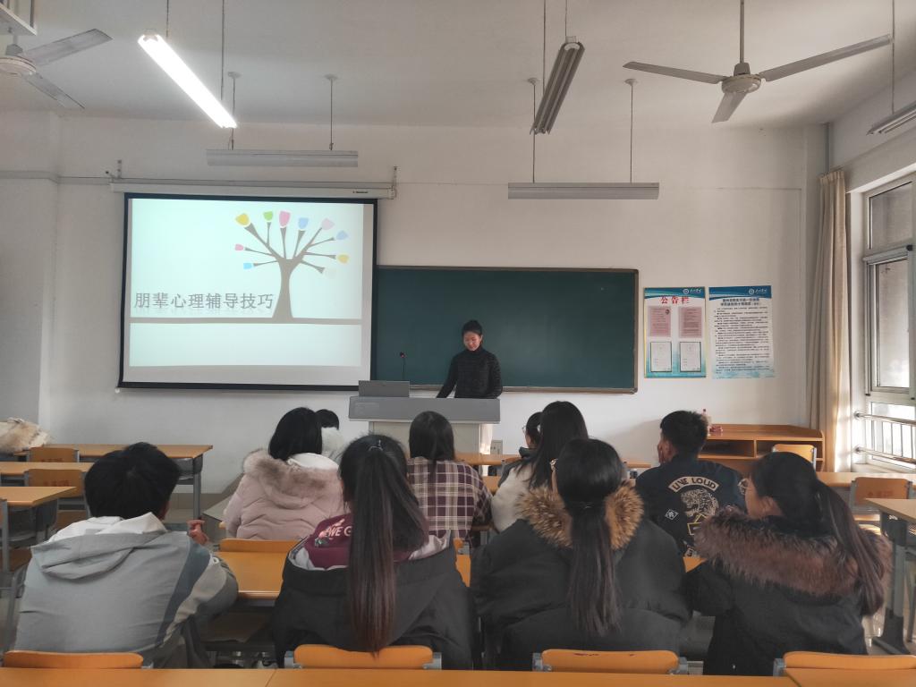 为全面了解2019级新生心理健康状况,帮助2019级各班心理委员及时了解各班学生心理情绪,从而做出合理恰当的心理辅导。我院在博文楼235教室举办了朋辈心理辅导技巧培训活动,2019级心理委员及部分学生干部参加了此次活动。