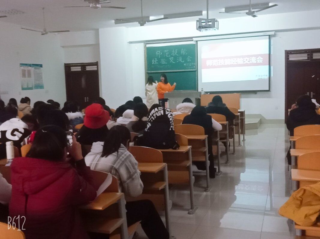 11月19日我院举办了师范技能经验交流会,此次交流会邀请了在师范技能大赛中取得优异成绩的两位学姐,结合自身参赛经历,分享专业技能与技巧。此次交流会中我们从两位学姐落落大方、绘声绘色、幽默风趣的讲解中看到了优秀教师的姿态。此次交流会过程中,同学们积极与学姐互动,提出自己的疑问,学姐们耐心解答。 通过此次交流会同学们受益匪浅,加强了师范生的职业技能,为同学们以后顺利进行的师范技能考核打下了坚实基础,促进了我院学风建设工作的开展。