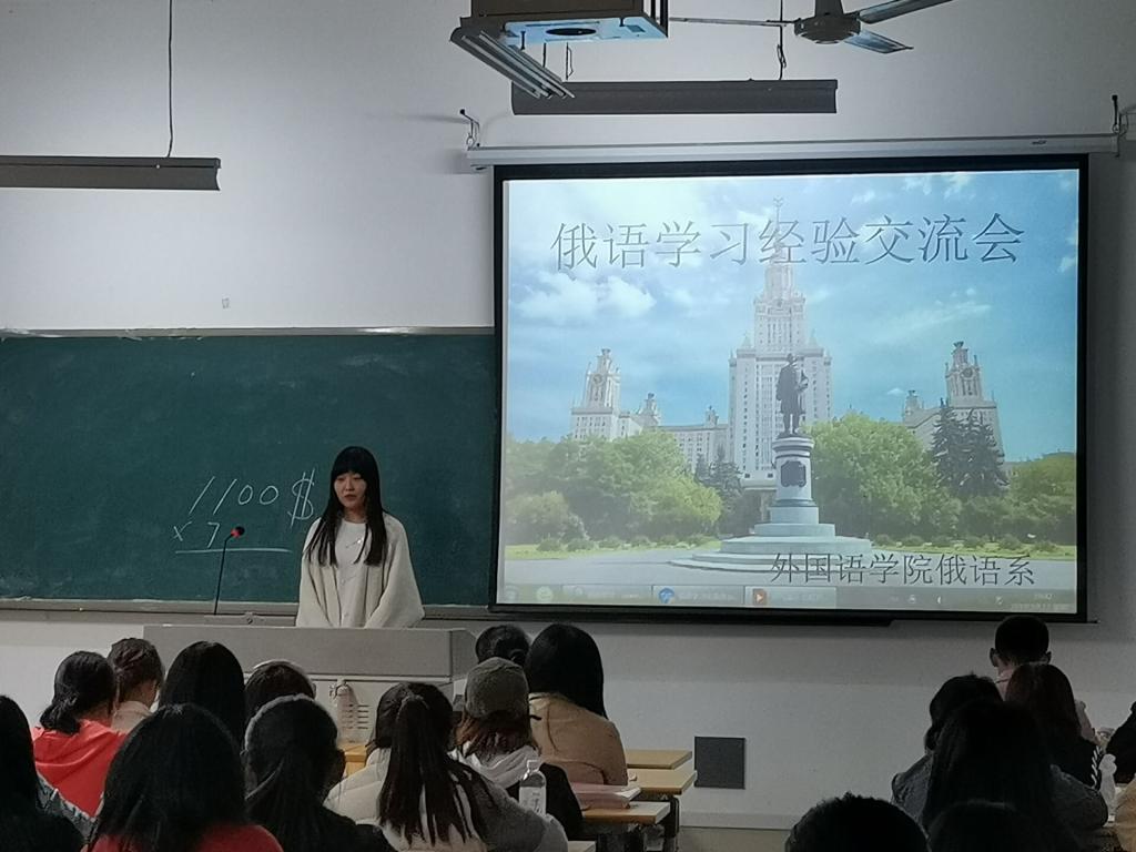 首先系主任窦可昀老师从学习态度、学习方法等方面为19级新同学介绍了俄语学习伊始可能遇到的困难。窦可昀老师强调要想学好俄语必须要有端正的学习态度,明确的学习目标。随后17、18级宋明珠、王紫薇、宋家欣、李佳琪同学从听说读写译几个方面,结合自己的学习经验与同学们进行了细致的交流。19级同学提问踊跃,各位学长为他们悉心解答,新生老生就专业学习的各个方面相互探讨,交流会现场气氛活跃。最后本次活动在同学们的掌声中落下帷幕。