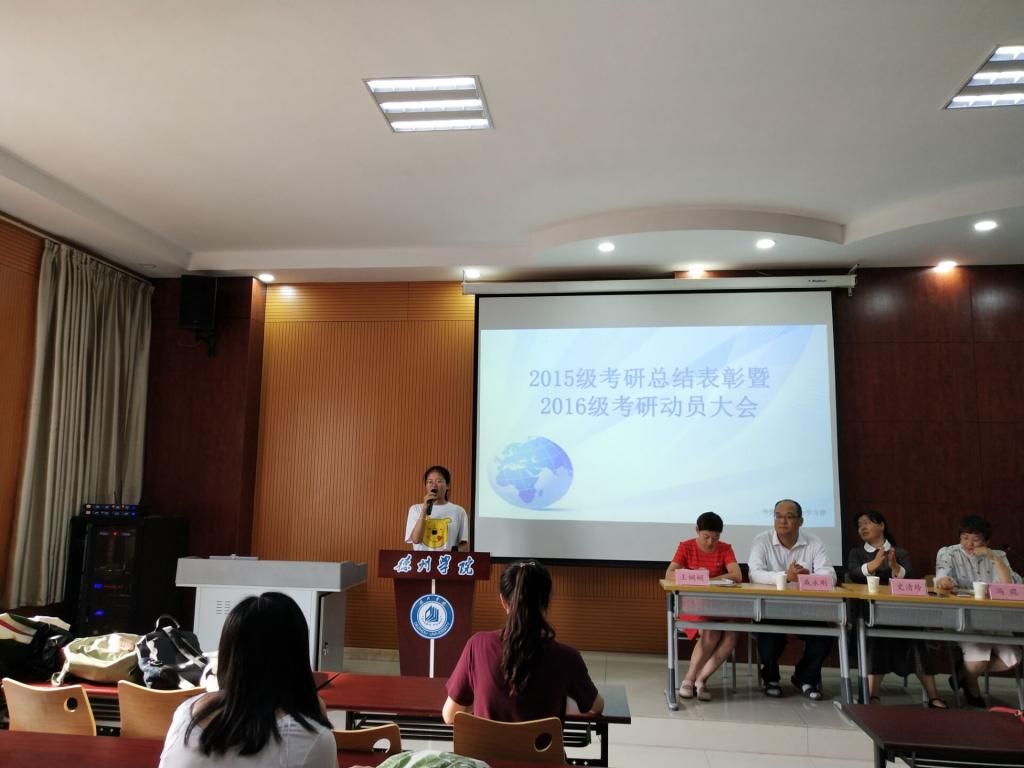 6月4日,抖音tv电视版app最新在博文楼347教室隆重召开2015级考研总结表彰暨2016级考研动员大会。会议由抖音tv电视版app最新党总支书记冯琨主持,抖音tv电视版app最新副院长崔静静对2019年的考研工作进行总结,表彰2015级拟录取的研究生同学,激励2016级考研同学。团总支书记张萌萌、办公室主任戚永刚及各系主任、教研室主任等参加了本次会议。
