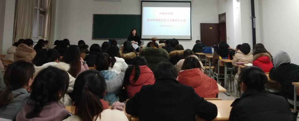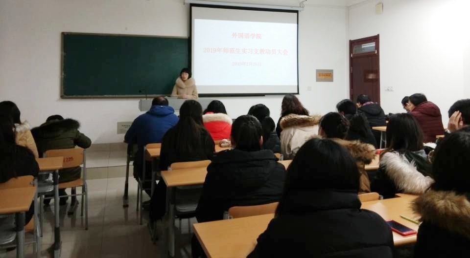 2月26日,抖音tv电视版app最新于博文楼225教室召开了2019年春季实习支教动员大会。党总支副总支书记李想、副院长崔静静、实习支教技术指导老师张寿峰及即将参加春季实习支教的2016级英语师范专业全体学生参加了动员会,动员会由副院长崔静静主持。