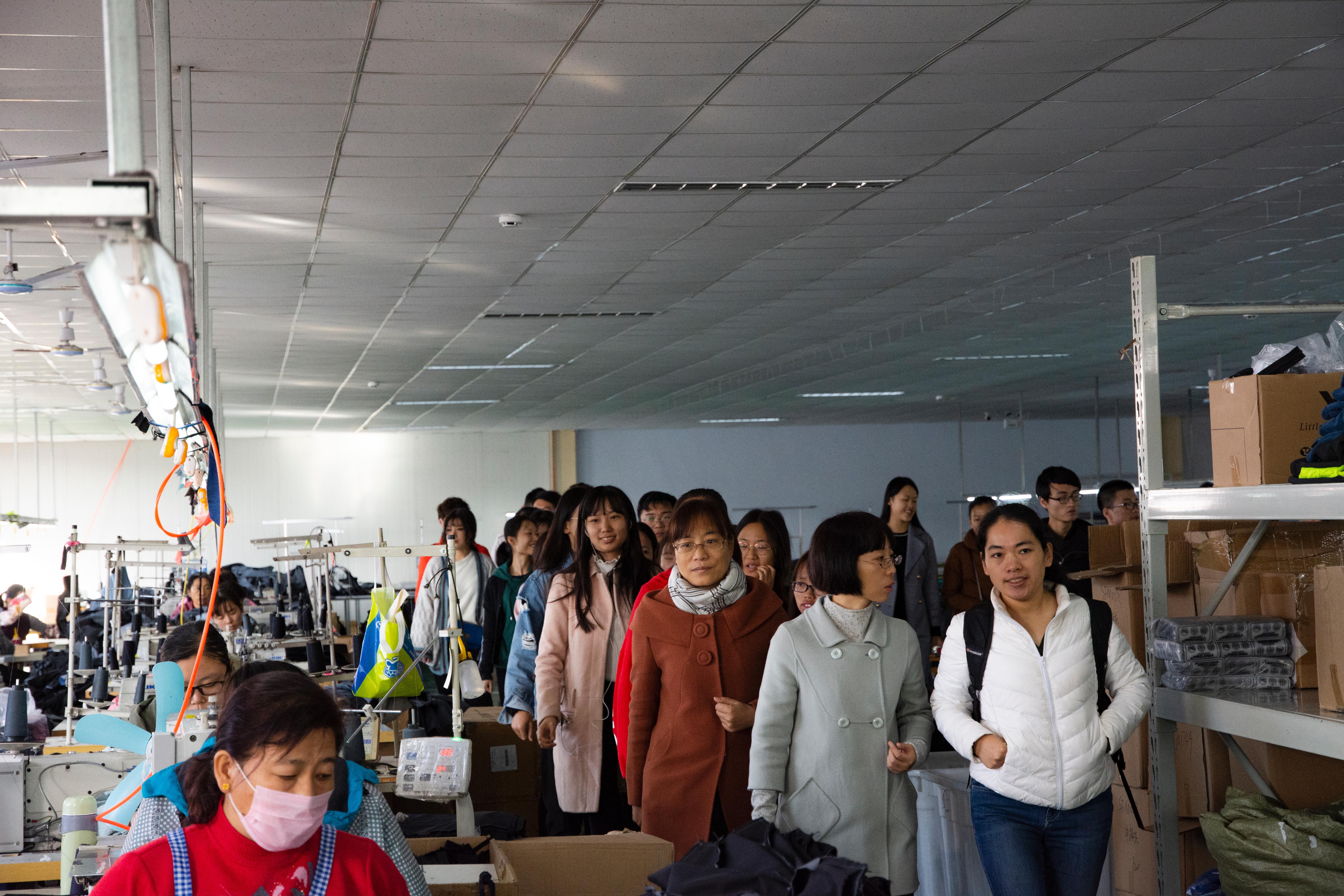 首先,企业负责同志带我院师生参观了基层缝纫车间和裁剪车间。随后,介绍了公司整体布局、内部结构、历史沿革以及未来发展规划,该公司为工贸一体的复合型企业。公司欧洲部销售经理是我院2002级学生,她与大家分享了自己的成长经历,表示自己也是从基层做起,逐步晋升,很感谢公司对自己的培养,并鼓励学弟学妹们一定要脚踏实地,认真做好每一件事。考察结束后,公司负责人与两位老师进行了进一步对话,负责人提出,作为一家国际化企业,目前公司也在进一步转型,急需大量知识型、复合型人才作为其发展依托,公司非常欢迎我院毕业生来此应聘。