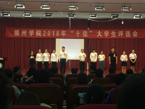6月8日晚,德州学院举办2018年“十佳”大学生评选会,德州学院副校长张存峰、学生工作处处长杨照征、团委书记张月青及各院系相关领导出席本次大会,各学院学生代表参加本次会议。
