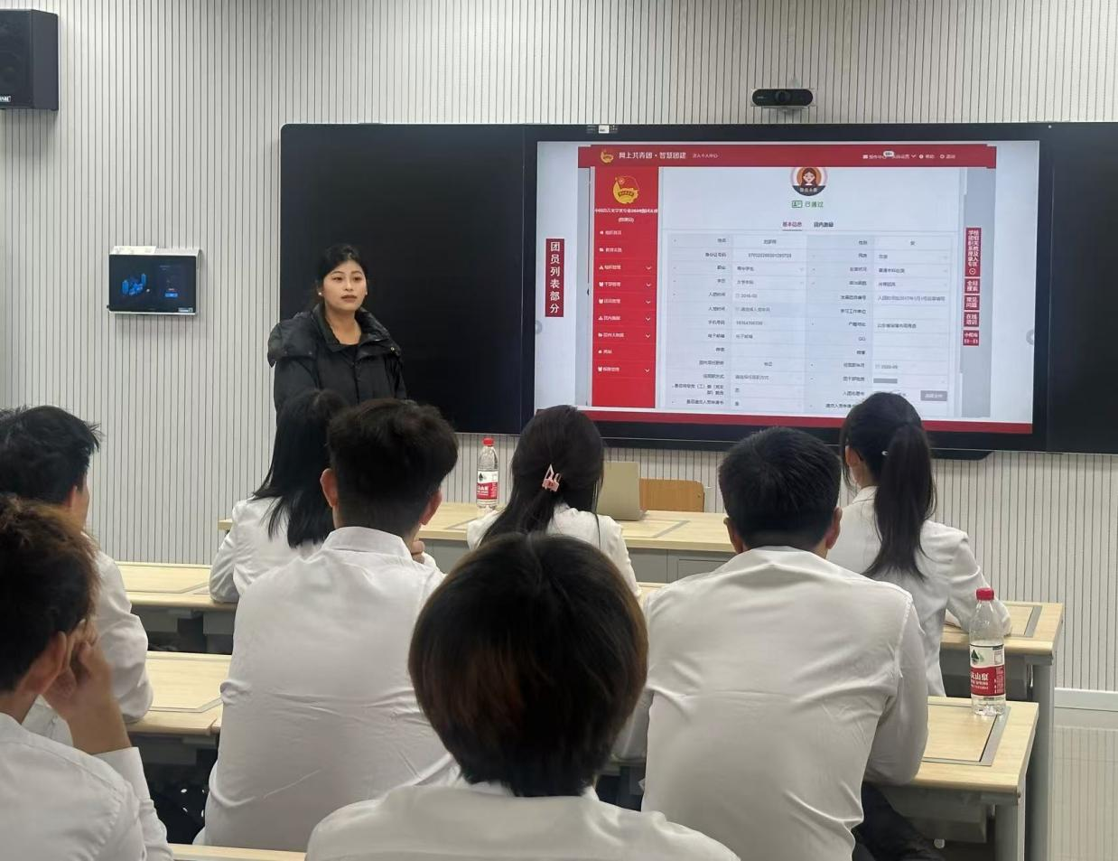 讲解人员对智慧团建系统相关操作进行实操说明,从教育实践、学团组织关系梳理及录入、毕业学生团员转接等6个模块进行讲解,帮助同学们对智慧团建系统的功能、意义及重要性有了更深了解。最后,讲解人员对同学们提出的疑问进行仔细解答。