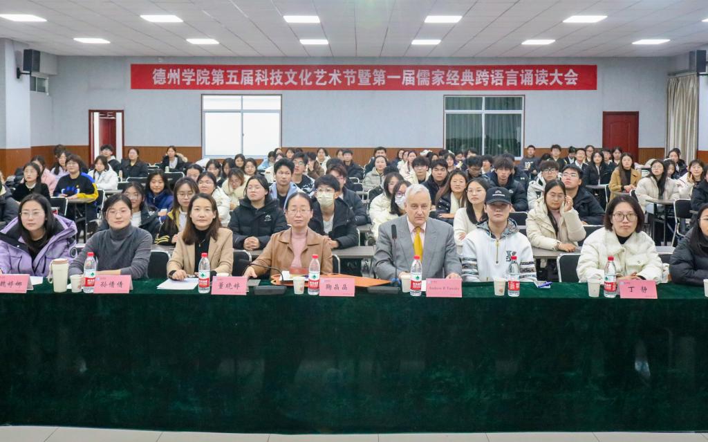 在诵读大会上,选手们用中英、中日、中俄多种双语形式诵读儒家经典,展现了他们对儒家文化的热爱与传承。他们的诵读声情并茂,将儒家经典中的智慧与哲理呈现给观众,赢得了在场师生的阵阵掌声。