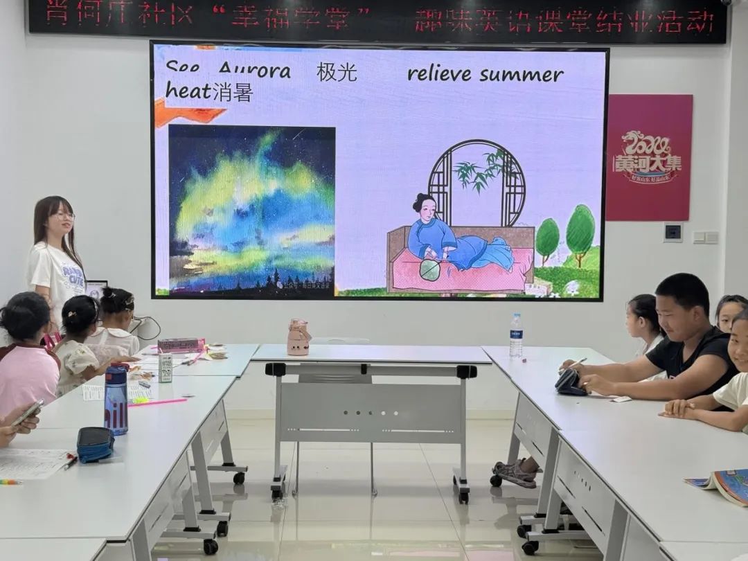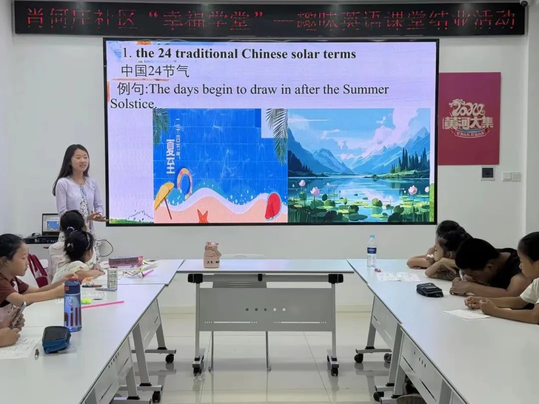 活动开展前期,志愿者们与社区负责人紧密合作,确保活动细节完美。活动开展过程中,志愿者们帮助孩子们复习英文单词,巩固语言基础。志愿者热情迎接每位小朋友,用流利的英语和生动的描述介绍夏至的意义,让孩子们感受夏季之美。他们还播放了关于夏至的科普视频,激发孩子们对科学探索的兴趣。
