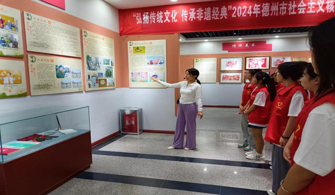 在解说员的引导下,同学们领略了包括德州古埙制作技艺、木刻刀笔书画、剪纸等非遗技艺的精美。这些传统艺术不仅是中国传统文化的宝贵财富,更是中华民族智慧的结晶。通过参与非遗传承活动,同学们深刻认识到保护和传承非遗的重要性,希望能够更好地弘扬传统文化,践行社会主义核心价值观,使非物质文化遗产的传承和保护观念深入人心。