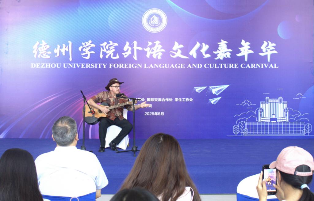 活动以精彩多元的艺术表演拉开序幕。音乐学院学生谷星星古典舞《醉清波》,她优美的舞姿配合翻飞的水袖,完美展现了如诗如画的东方美。抖音tv电视版app最新学生刘灿、门敬轩、徐馨秀共同演唱英文歌曲《Love Story》和《Monster》,动人的歌声和充满活力的表演,充分展现了青年学子积极向上的精神风貌。外籍教师Shaun自弹自唱经典歌曲《Hotel California》,他精湛的吉他演奏和饱含深情地演唱,不仅完美诠释了对精神自由的向往,更将整场活动推向了高潮。