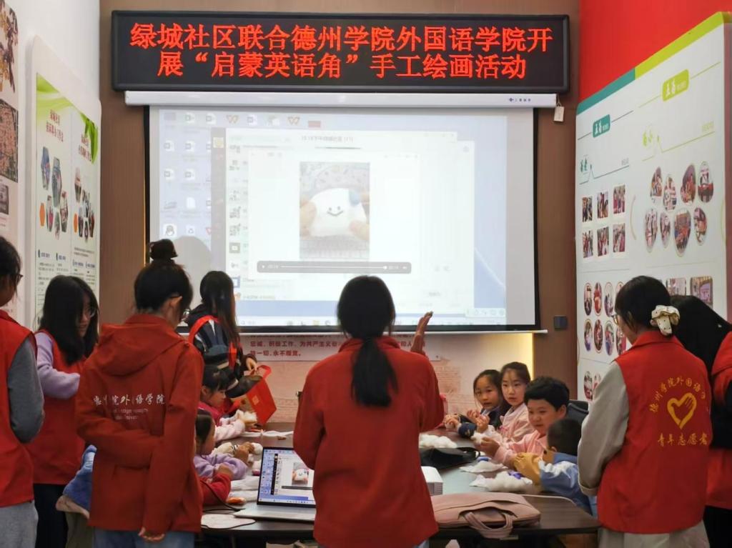 10月26日,2024级商务英语一班团支部走进肖何庄社区,开展“四季花语・英语启蒙”公益课堂。课堂以季节、天气为主题,将英语词汇教学融入趣味手工创作。志愿者们通过单词接龙、情景模拟等互动游戏,配合手工制作教学,让英语学习变得轻松有趣,有效帮助孩子们打破语言学习壁垒,激发学习兴趣。