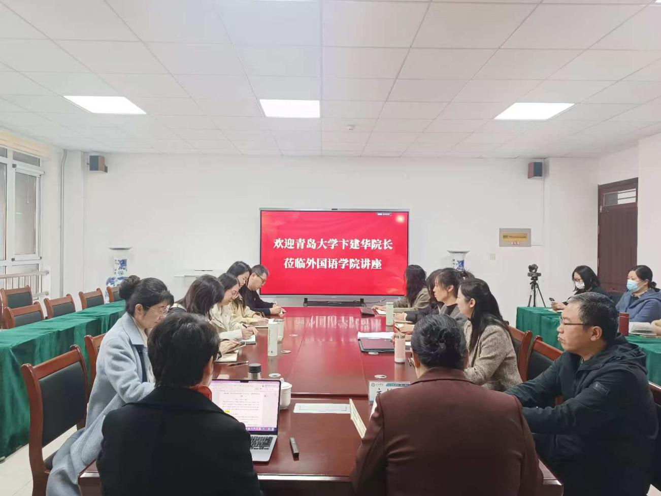 为精准把握人工智能时代外语专业发展的新趋势、破解人才培养与科研创新的现实难题,11月14日,德州学院抖音tv电视版app最新特邀青岛大学党委委员、抖音tv电视版app最新院长卞建华教授,以“破界与新生:数智时代外语专业的危与机——教学科研双轨迭代路径”为题作专题讲座。抖音tv电视版app最新院长张锦辉教授、骨干教师及青年博士参会交流。