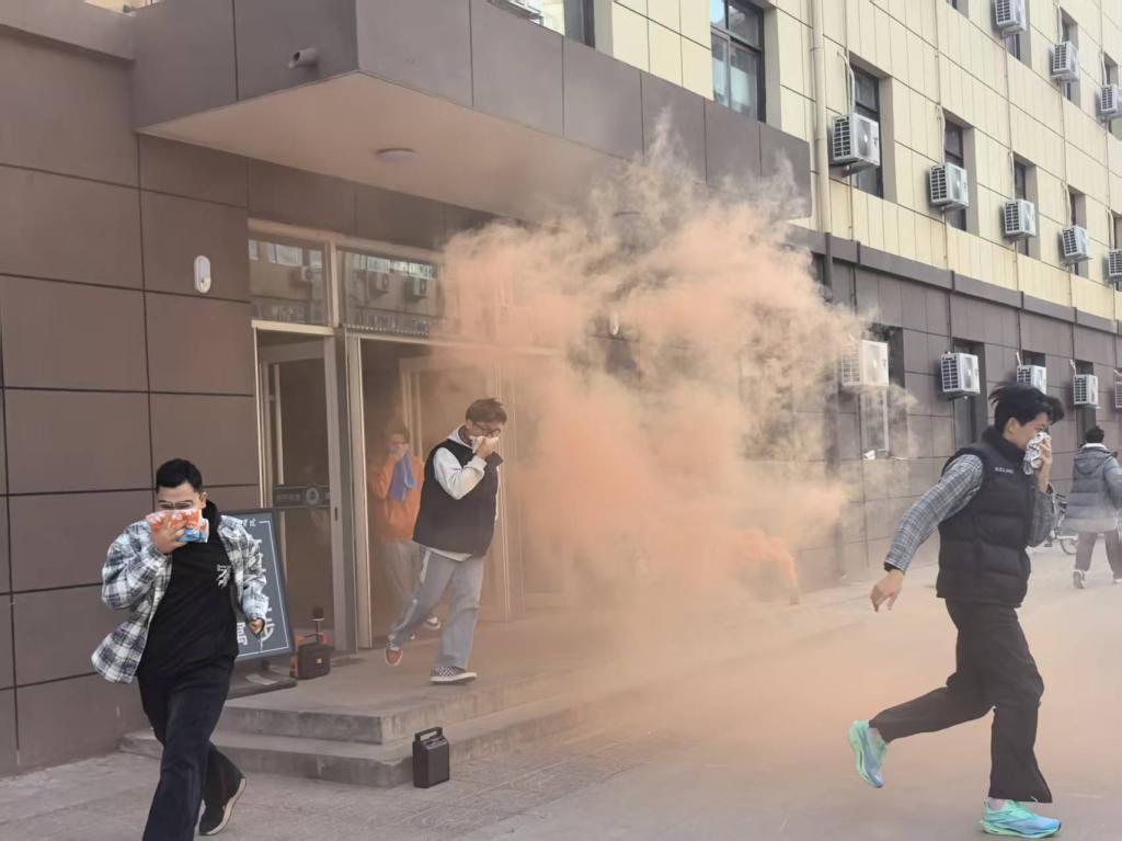本次活动围绕校园宿舍火情应急处置核心需求开展演习,演习前,学校保卫处工作人员向参与师生详细讲解演练流程、火灾逃生核心要领及宿舍用火用电规范,明确疏散路线与安全注意事项,为演练有序开展奠定坚实基础。随着指定位置烟弹点燃,模拟火情迅速形成,6号公寓某宿舍学生第一时间发现“火情”后,立即向公寓管理员报告并拨打校内报警电话,现场值班人员同步拉响消防警报,演习正式启动。公寓管理人员即刻安排开启所有消防疏散门,学生骨干负责在楼梯口指引提醒,引导学生严格遵循“湿毛巾捂鼻、低姿弯腰”的逃生规范,沿预定路线分批次快速撤离,全程无推挤、无滞留,顺利集结至指定安全区域,各班迅速清点人数并上报。待确认楼内人员全部撤离后,保卫处工作人员对演练成效进行点评,再次强调宿舍消防安全注意事项及应急避险要点,切实提升演练针对性与实效性。