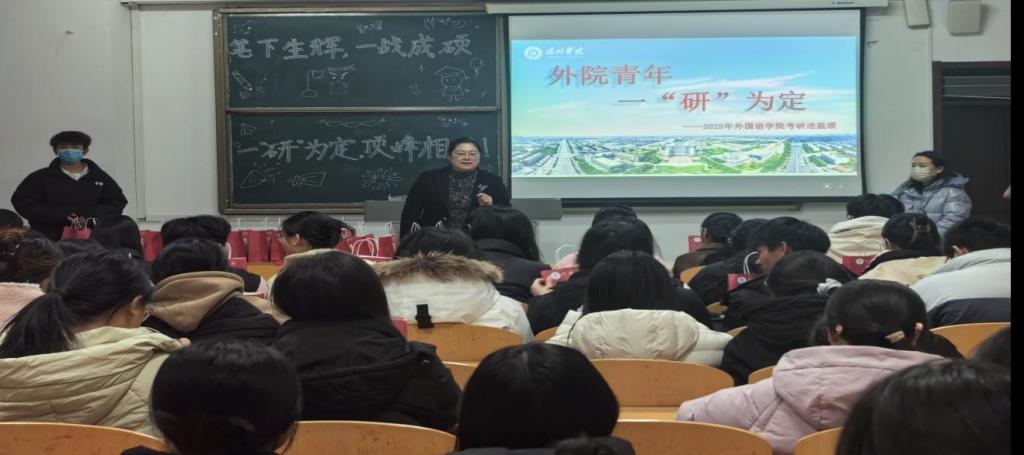 活动现场,张锦辉院长代表学院向全体考研学子致以最诚挚的慰问。她高度肯定了同学们在漫长且艰辛的备考路上所展现出的坚韧毅力与不懈拼搏精神,并悉心叮嘱大家,在冲刺的关键阶段,要进一步优化学习方法、保持高效复习节奏,以平稳从容的心态积极迎接即将到来的挑战。随后,孙红旗书记作总结发言,他着重强调,学院将始终如一地做好各项服务保障工作,为同学们的考研征程筑牢坚实后盾。同时,他建议同学们在最后阶段务必合理安排作息,保持良好的复习节奏,以最饱满的精神状态迎战考试,为个人未来发展与母校荣光增添新的光彩。此外,学院还特别为考研学子准备了寓意深长的“外院青年 一‘研’为定”暖心福袋,福袋内精心配备了暖贴、考试必备文具、计时器、励志糖果等物品,每一份礼物都承载着独特的美好寓意:暖贴“宝”你温暖、坚定前行;文具助你“具”细无遗、下笔有神;糖果为你补充能量、“果”然甜蜜,字里行间的祝福更愿为学子们加持好运。