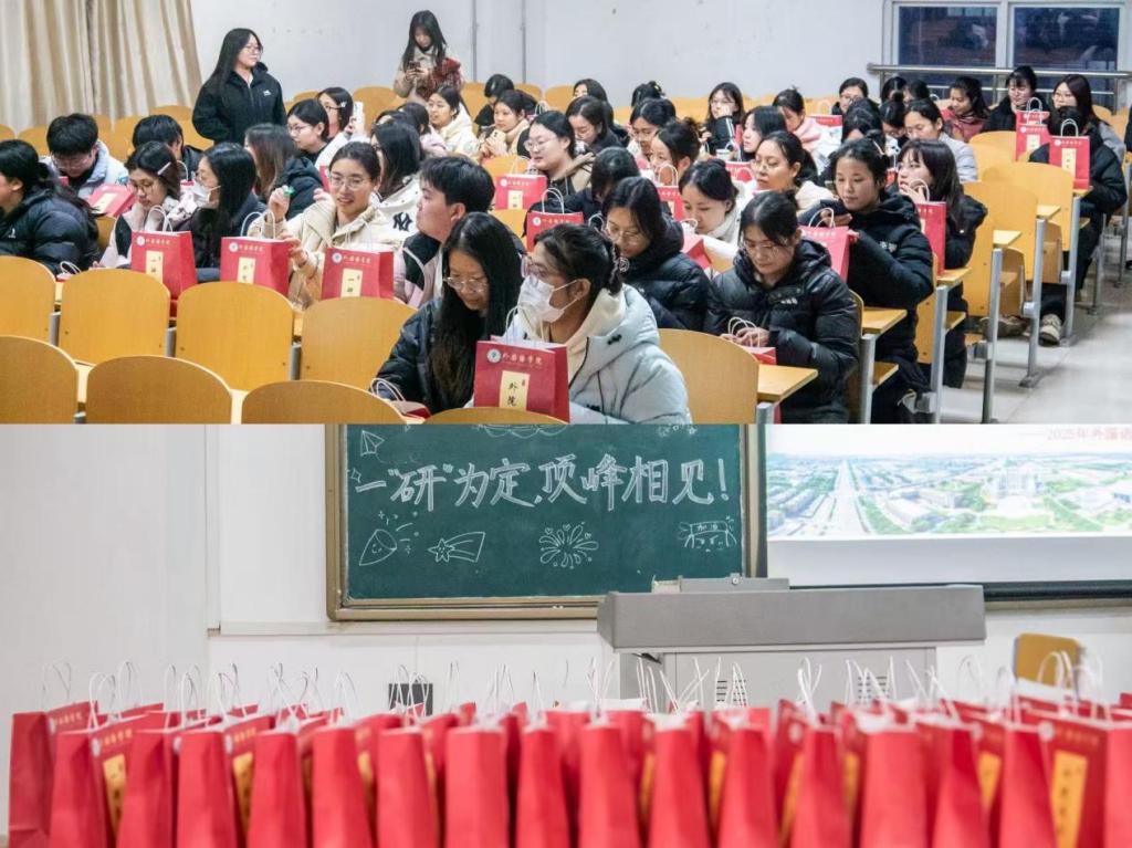 这份充满希望与温情的礼包,凝聚着学院对考研学子的深切关怀与殷切期望,更寄托了学院对他们金榜题名的美好憧憬。此次慰问活动不仅是考研冲刺阶段的“加油站”,更是温暖人心的“定心丸”,充分彰显了我院对考研学子的重视与鼓舞,极大地提振了大家的信心与斗志。同学们纷纷表示,收到学院精心准备的礼物备受感动与激励,考研的信念愈发坚定,接下来将以更饱满的精神状态和昂扬的奋斗姿态投身后续备考冲刺,全力以赴追逐考研梦想,不负青春韶华与学院厚望。