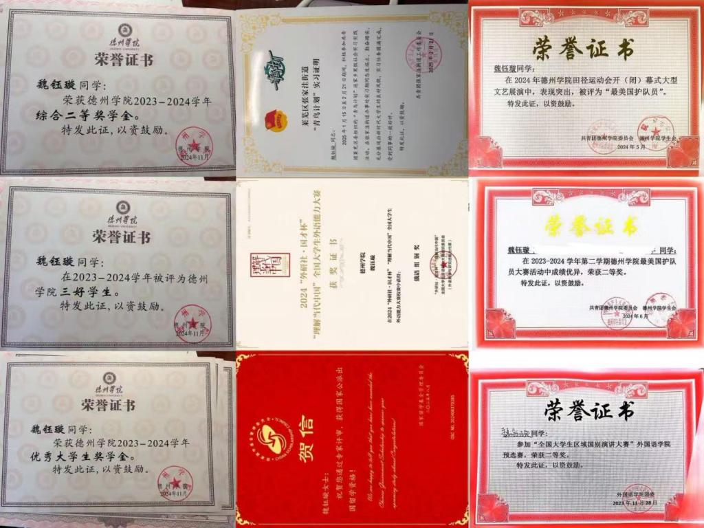 2025年10月,德州学院综合一等奖学金