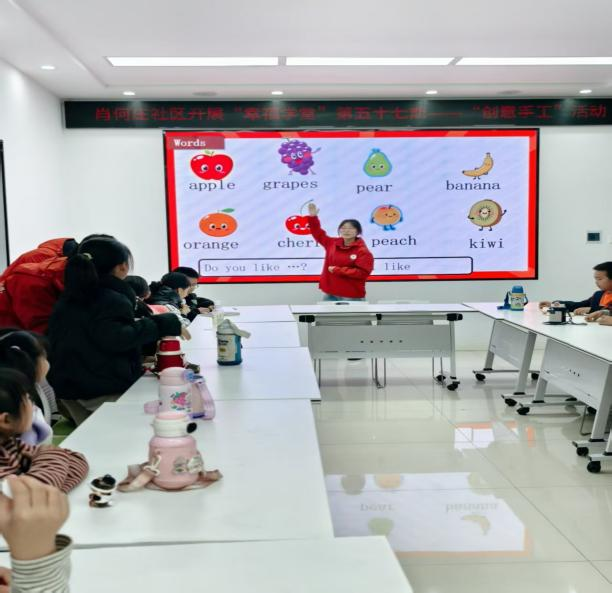 11月16日,2025级俄语二班、2025级英语(师范)二班团支部走进肖何庄社区,开展“趣味水果乐园”主题志愿活动。团队以“水果主题PPT+多维互动”为主题,通过英文认水果、超市采购模拟、水果味侦探游戏,搭配小贴画奖励,使社区儿童在“玩中学”中流利掌握十余种水果英文表达,既提升英语感知能力,也收获动手创作的快乐。
