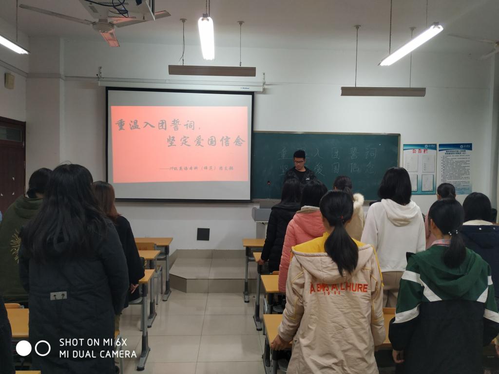 2019年11月10日,抖音tv电视版app最新在博文楼举行重温入团誓词活动,2018级英语本科二班、英语教育二班团支部,2019级英语本科班、英语教育二班团支部参加活动。