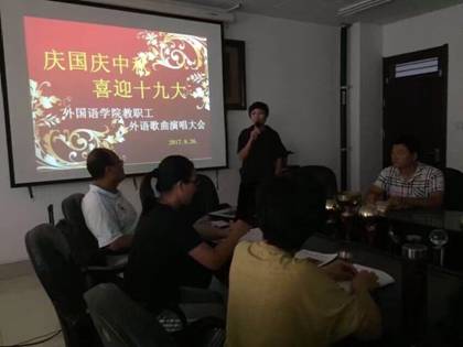 2017年9月26日下午,为了庆国庆中秋喜迎十九大抖音tv电视版app最新举办外语歌曲演唱活动。教工党员用外文歌曲表达了热爱祖国、坚信党、忠于祖国的信念。此次活动,教工党员踊跃参加。活动现场,30十多名党员通过句句歌曲、篇篇诗歌表达了对祖国的无限热爱。
