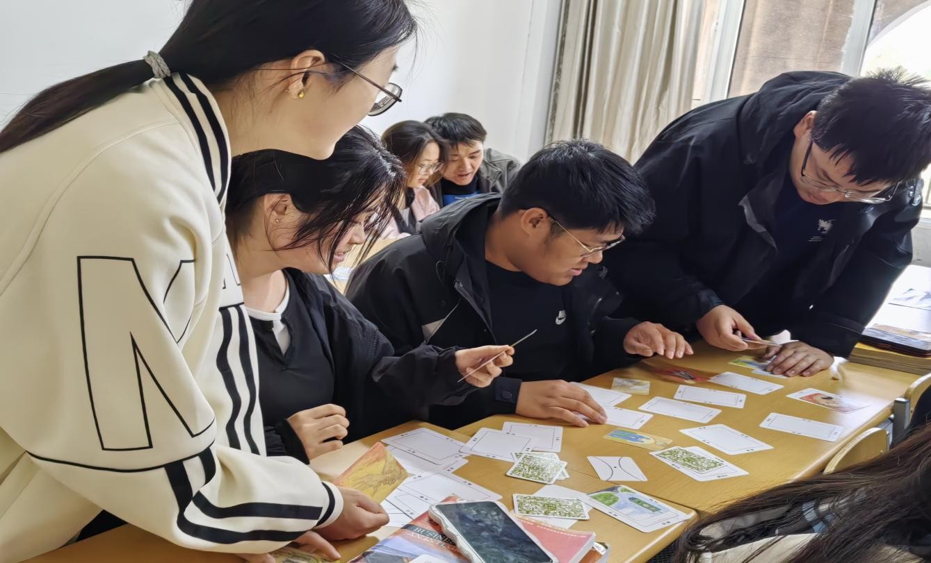 主持人首先向同学们介绍了OH卡牌的玩法规则:卡牌分为图卡和文字卡,参与者随机抽取组合后,通过联想构建故事,进而解读潜意识中的心理状态。同学们依次抽取3-5张图像卡,在组内分享图片描述与直觉感受后,将其与文字卡自由组合,探索图像与文字的潜在关联。“破碎的镜子”图像卡被放置在“重建”文字卡旁时,引发关于自我接纳的深入探讨;“星空”图像卡与“无限可能”文字的组合,则让参与者重新审视内心潜能。