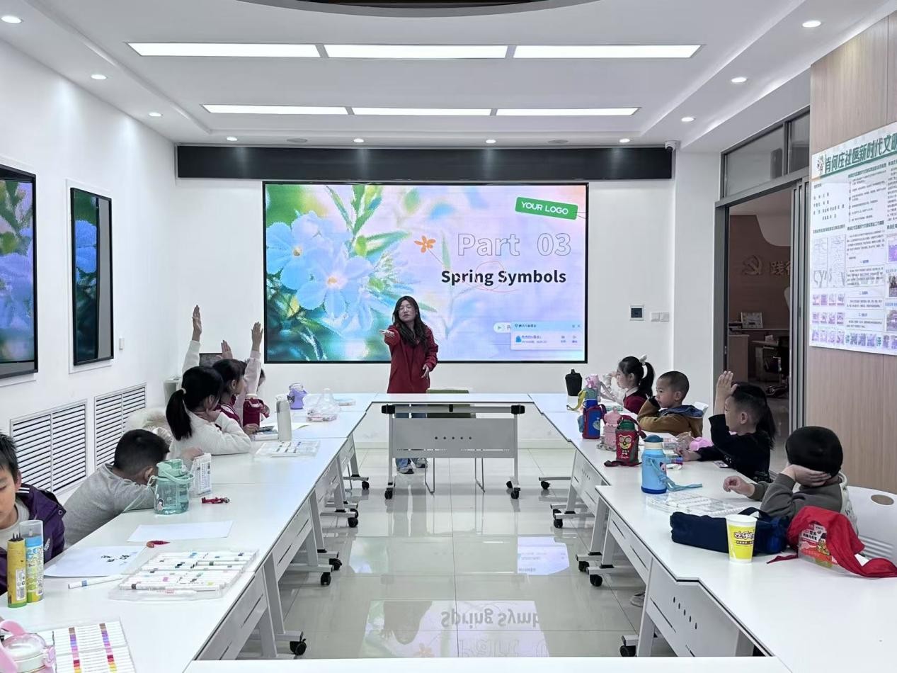 活动伊始,春日主题英语小课堂正式开启。志愿者们借助精美的PPT,采用互动式教学方法,带领孩子们学习各类与春天相关的英语词汇和表达。课堂上,孩子们热情高涨,积极参与互动,不仅有效提升了英语水平,还深切感受到了春天的盎然生机。在随后的创意春天绘画工坊环节,孩子们充分发挥想象力,用画笔勾勒出心中的春天图景。志愿者们鼓励孩子们用英语描述自己的画作,进一步激发了他们的创造力,让孩子们在艺术创作中领略到春天的魅力。