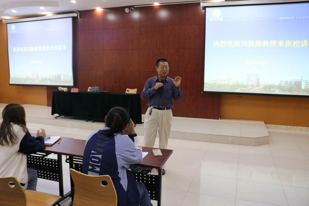座谈会后,刘振前教授为我院师生做了“Learning to learn: Insights gained from linguistics, education, psychology and psycholinguistics”的专题讲座。刘教授围绕职业规划,从语言学、教育学、心理学与心理语言学等角度,结合自身语言学习与教学的经验,以及在语言学理论、应用语言学、认知语言学研究中的一些发现,系统阐述了英语专业学生听、说、读、写、译等语言技能的培养以及语言学、文学与翻译的学习方法。引导学生树立正确的学习观、择业观,并在学习过程中探索出有效的学习方法。